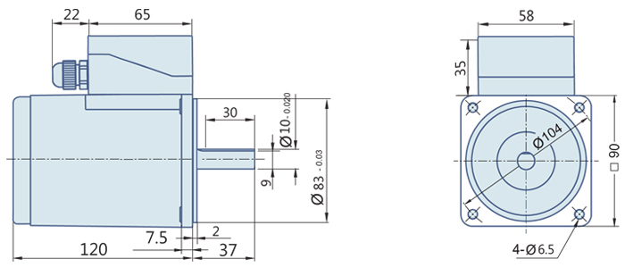 A Sky blue colored background indicates gear shaft rotation in the same direction; a Brown background indicates rotation in the opposite direction as the motor shaft. The speed of the Gear Motor is calculated by dividing the motor’s synchronous speed (50 Hz; 1500 RPM & 60 Hz; 1800 RPM) by the ratio